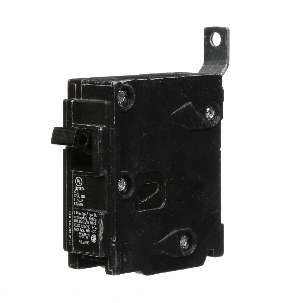 Siemens Arc Fault Circuit Breaker, 120 VAC, 15 A, 22 kA Interrupt, BL Frame, Thermal Magnetic Trip, 1 Pole, 1 Phase, Bolt-On Connection, 14 to 8 AWG, 12 to 8 AWG Wire, Panel Mounting, 40 deg C, 1 in L x 4 in W x 5 in H Dimensions