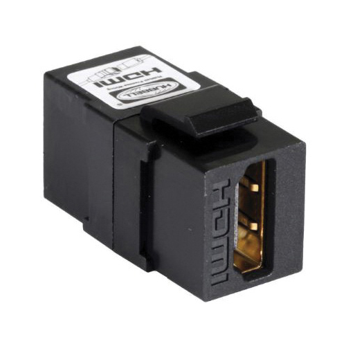 PREMISE WIRING iSTATION™ HDMI Keystone Coupler, Standard, Female to Female/Plug-In/Screw Connector, Snap-Fit/Snap-On Mount, 1 Port, For Use With: Extensive Line of AV Connectors, Hubbell® iSTATION™ Modules and XCELERATOR™ Jack, Plastic, Black Oxide, 1.287 in L x 0.665 in W x 0.57 in D