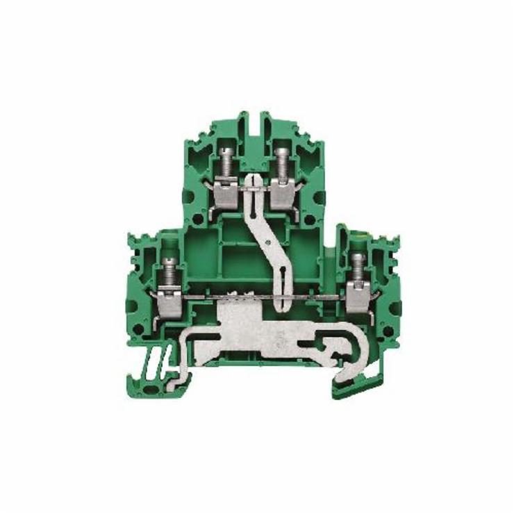 Weidmuller Terminal Block, Series: W Series, 480 A, 26 to 10 AWG Wire, 8 mm Wire Strip Length, 2-Tier Terminal, Snap-On Mounting, Screw Connection, -50 to 120 deg C, Wemid, Green/Yellow, 2.39 in H x 0.24 in W x 2.49 in D Dimensions