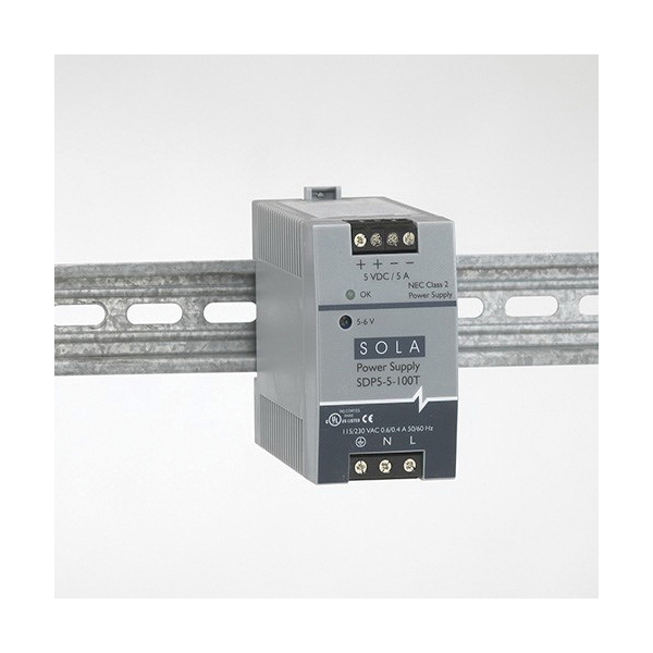 SolaHD SDP™ DC Power Supply, Low Power, 85 to 264 VAC/90 to 375 VDC Input, 5 to 6 VDC Output, 25 W, 5 A, 47 to 63 Hz, DIN Rail Mount, Plastic Case, 3.58 in Width, 1.77 in Depth, 2.95 in Height