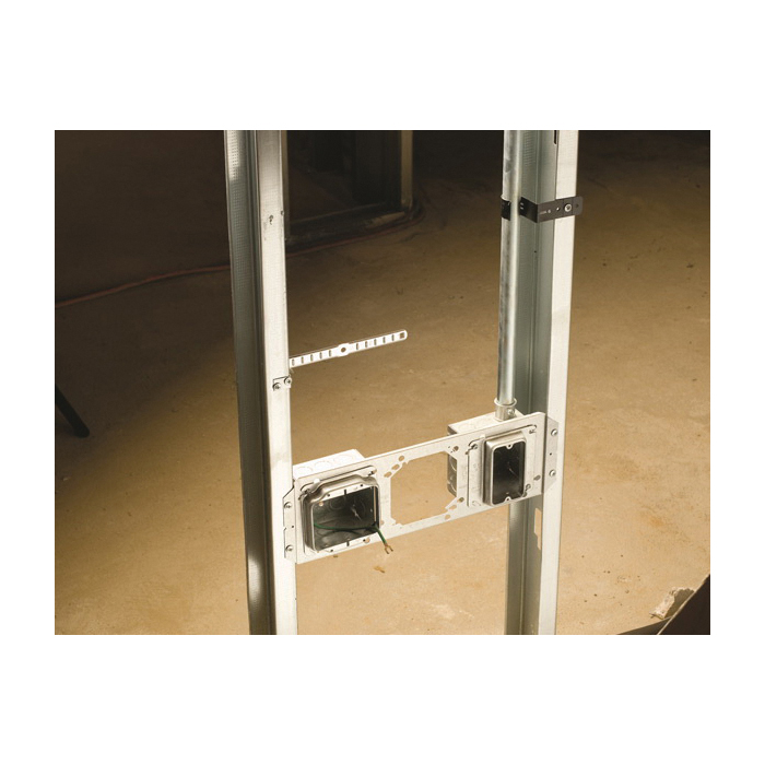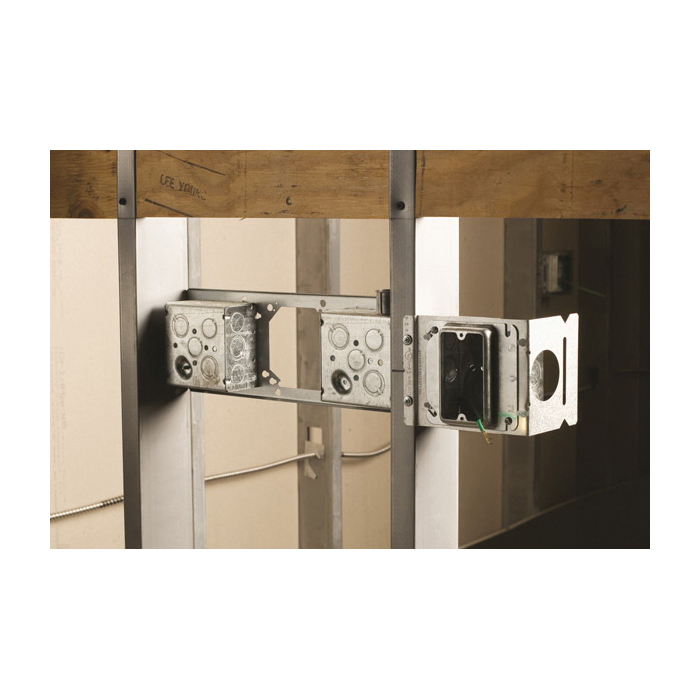 nVent CADDY Box Support, Rigid, 4 x 4-11/16 in Box, Panel Mount, For Use With: One Device Style 4S Deep Outlet Box, 1-1/2 and 2-1/8 in D Box, 3 Box, 16 in Stud Spacing, Steel, Pre-Galvanized