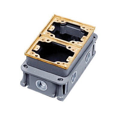 PREMISE WIRING Concrete Floor Box, Deep Fully Adjustable, 2 Gangs, 6 Knockouts, 3/4 in Knockout, Rectangular Shape, Surface Mounting, 36.5 cu-in Capacity, Cast Iron, Gray, 8.06 in L x 4.84 in W x 3.38 in H Dimensions