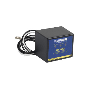 Square D™ brand Surgelogic™ SDSA3650 products are compact and affordable surge protective devices (SPDs). SDSA3650 SPDs offer a simple means to bring down initial surges to manageable levels and can offer additional value in a cascaded SPD system. Their compact design allows surge suppression to be installed adjacent to power panels or directly on sensitive equipment.