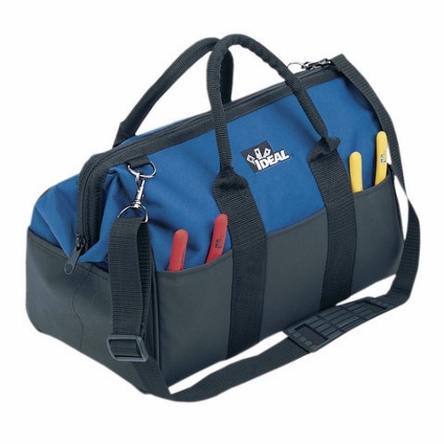 IDEAL® Tool Bag, Large Mouth, 16 in L x 9 in W x 12 in D Outside, Nylon Polyester, 22 Compartments