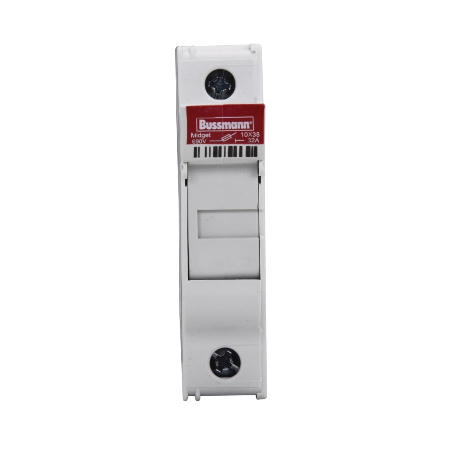 Bussmann Fuse Holder, Non-Indicating Modular, Series: CHM, 600/690 VAC/1000 VDC, 30/32 A, 1 Pole, Class: Midget, 18 to 4 AWG Wire, DIN Rail Mounting, 38 mm Fuse Length, 10 mm Diameter Fuse, -4 to 248 deg F, For Use With: 600/690 VAC BAF, BAN, FNM, FNQ, FWA, FWC, KLM, KTK, AGU, C10G, C10M, 1000 VDC PV-(amp)A10F, PV10M-(amp) Series Fuse, 2.909 in H x 0.689 in W x 3.275 in D Dimensions