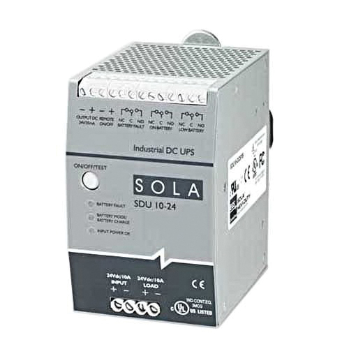 SolaHD Uninterruptible Power Supply, DC, Series: SDU, 24 VDC Input, 24 VDC Output, 240 W Power, 14 min Backup, 30 A Input Fuse, Metal Body, DIN Rail Mounting, Environmental Conditions: 0 to 95% Non-Condensing Relative Humidity, IP20 Enclosure, 4.88 in H x 3.02 in W x 4.55 in D Dimensions