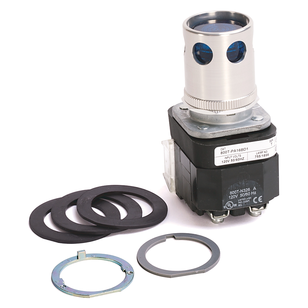 800T-PA16BD1 30.5mm Type 4/13 Mom. Contact PB-Illum., Blue, Ext. Hd w/ Guard, Incand./No Options, 120V AC 50/60 Hz, 1 NO