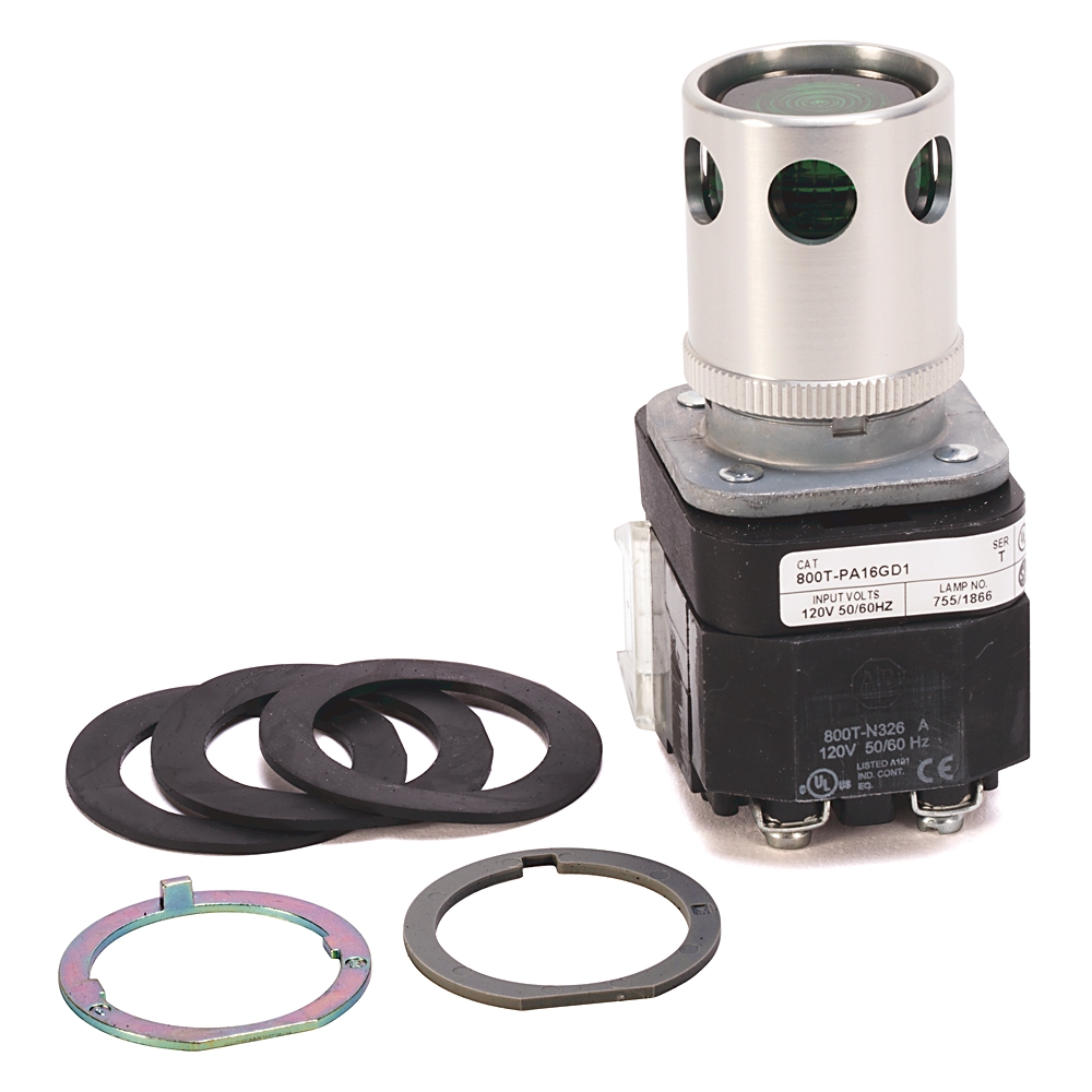 800T-PA16GD1 30.5mm Type 4/13 Mom. Contact PB-Illum., Green, Ext. Hd w/ Guard, Incand./No Options, 120V AC 50/60 Hz, 1 NO