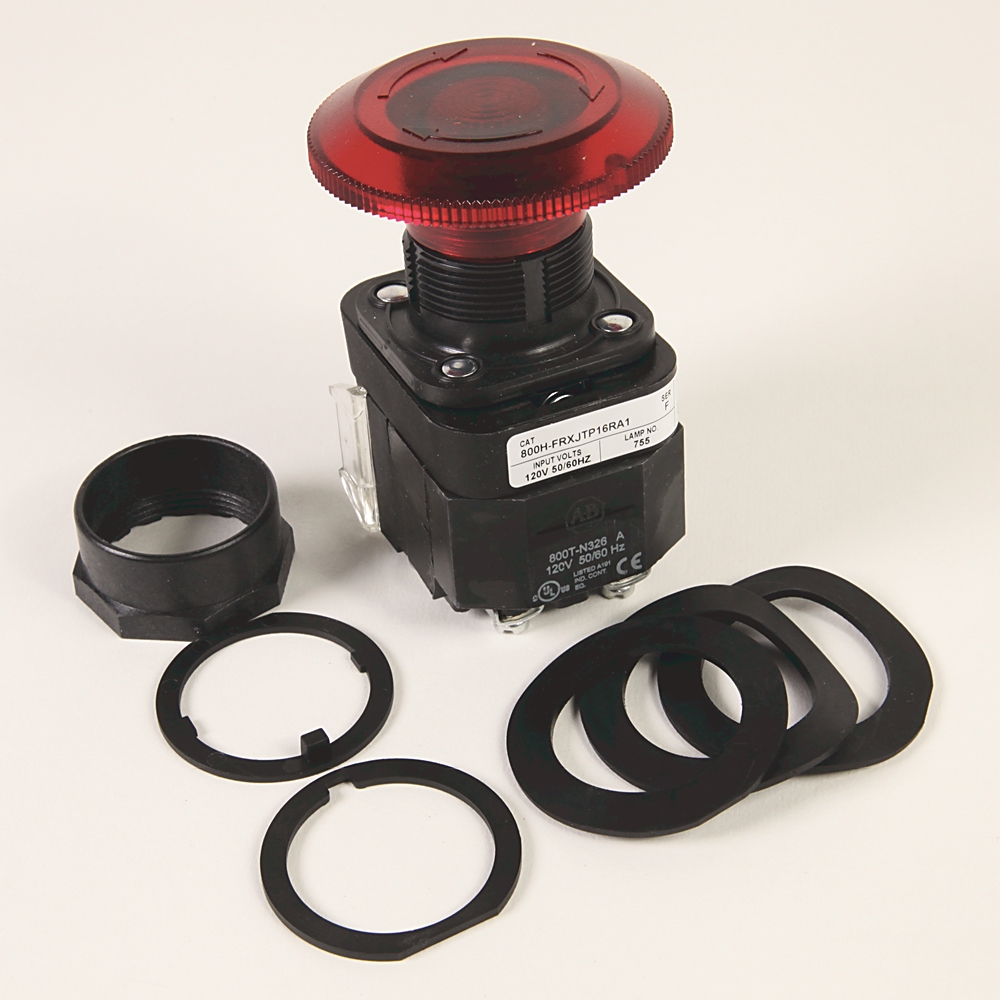 800H-FRXJTP16RA1 30.5mm Type 4/4X/13 2 Pos. PB-Illum., Push-Pull/Twist, Red, Jumbo Mushrm Hd, Incand., 120V AC 50/60 Hz, 1 NCLB-1 NO