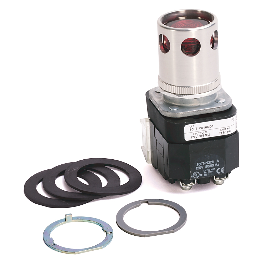 800T-PA16RD1 30.5mm Type 4/13 Mom. Contact PB-Illum., Red, Ext. Hd w/ Guard, Incand./No Options, 120V AC 50/60 Hz, 1 NO